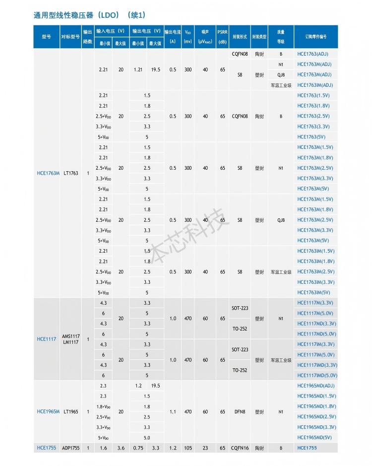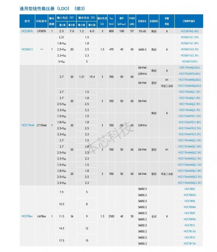 专用SOC产品选型表