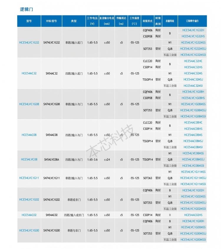 专用SOC产品选型表