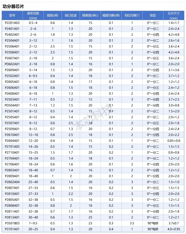 固定衰减器芯片/混频器芯片/滤波器芯片/定向耦合器芯片